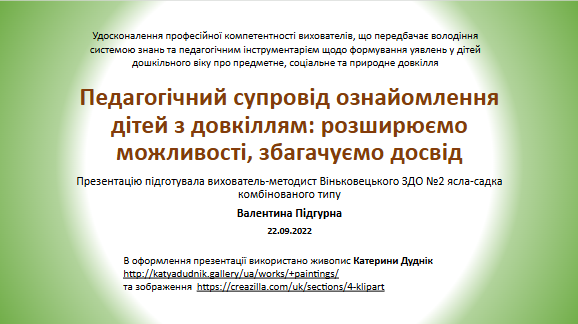 Для розширення і поглиблення теоретичних та практичних знань та умінь з проблематики ознайомлення дошкільників із довкіллям